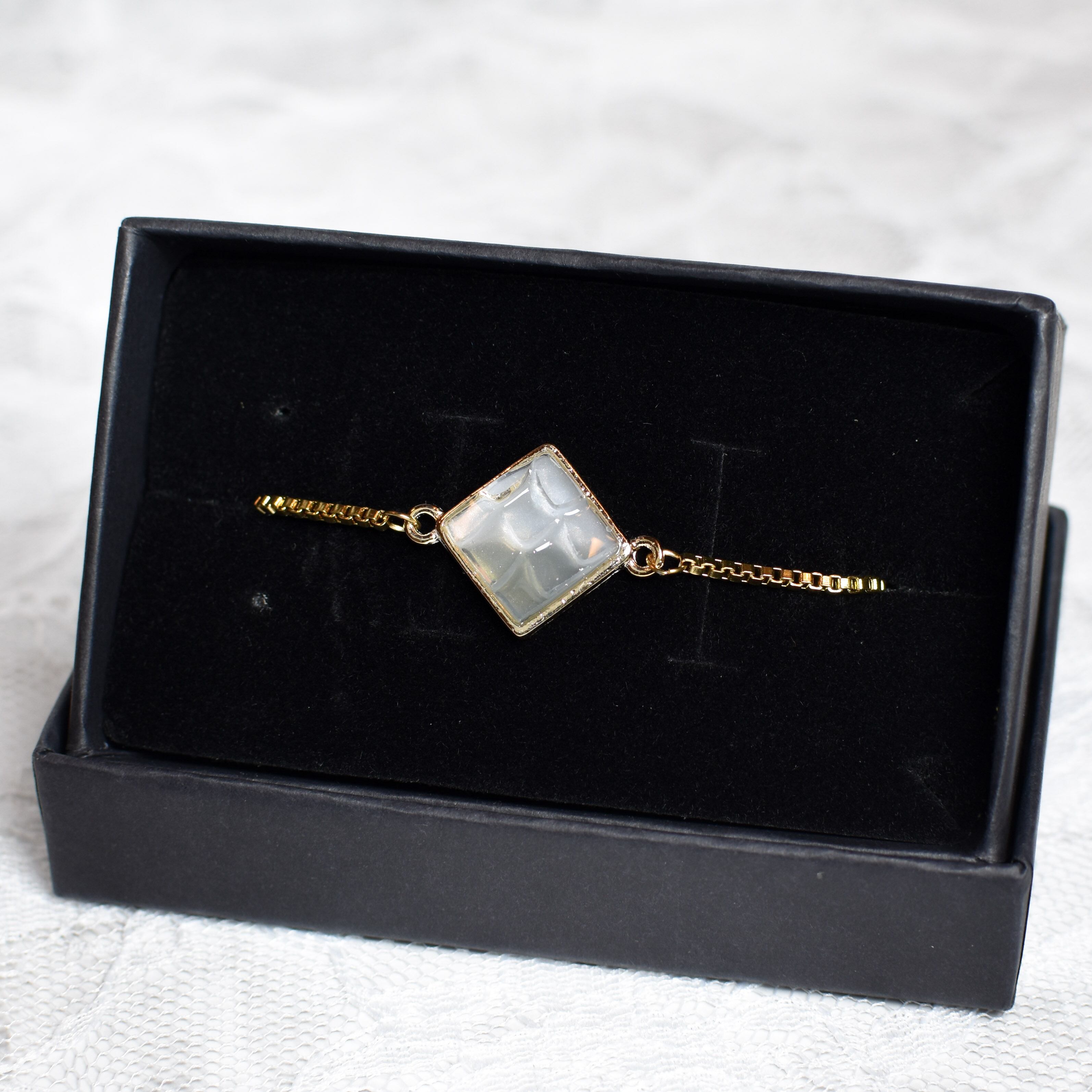 ②スライド式で調節可能なブレスレットとなっております。